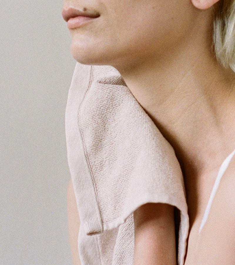 The Agnes Face Cloth Clay from Baina is made from 100% organic cotton and finished with an embossed Baina logo detail. In a soft, dusty pink tone inspired by natural, earthen hues, it offers a gentle touch and evokes a sense of calm and comfort.