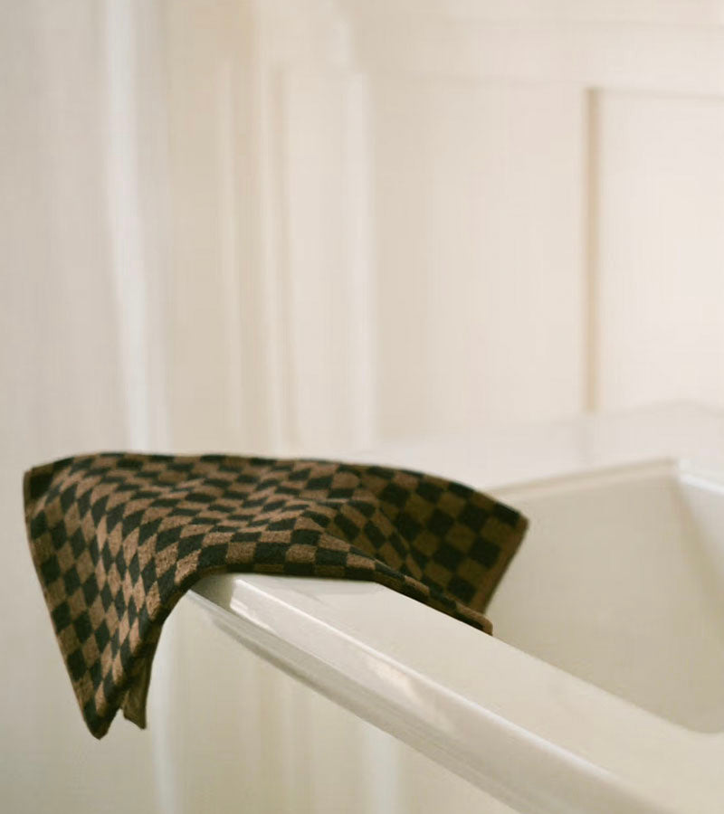 The Josephine Hand Towel in Tabac & Noir Individual from Baina is crafted from 100% organic cotton for a luxuriously soft feel. Featuring Baina’s signature checkerboard pattern in an elevated, unexpected color pairing, it brings a refined graphic touch to any bathroom ritual. Designed in the Antipodes.