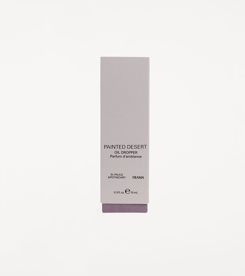 The Painted Desert Essential Oil Dropper 10 ml from Frama is a fragrance born from a natural landscape that awes the senses in its scale and color. Notes of sage, frankincense, cedar, and sandalwood form an elemental base, layered with dewy brightness where the sun’s heat meets the cool ground’s breath. Desert heat and ancient stone. Earth and air in suspended dialogue.