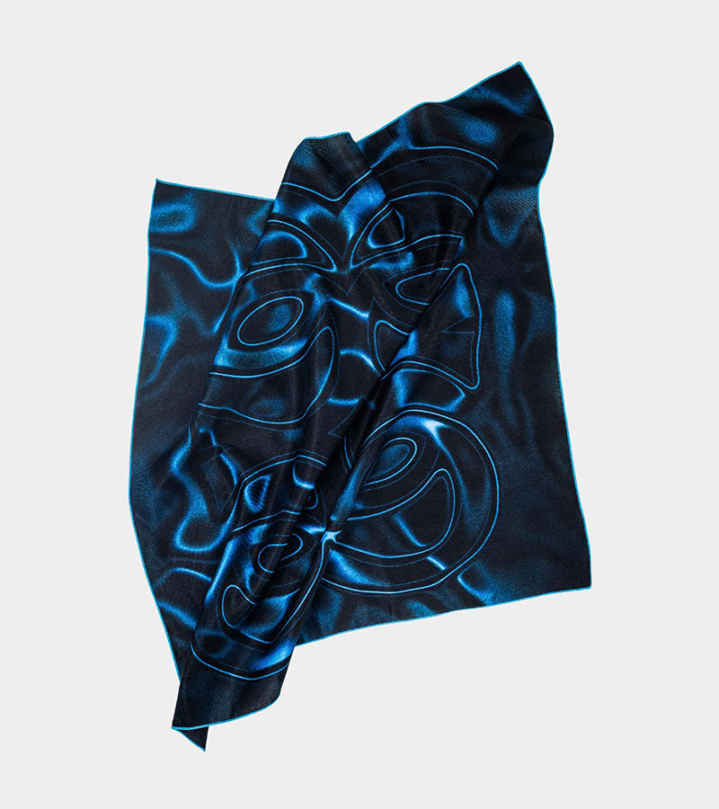 The Logo Bandana in Blue/Black from Sol Seok. A lightweight essential designed for movement. Woven from a blend of silk and cotton, this bandana balances softness with durability. Breathable against the skin, resilient enough for training.