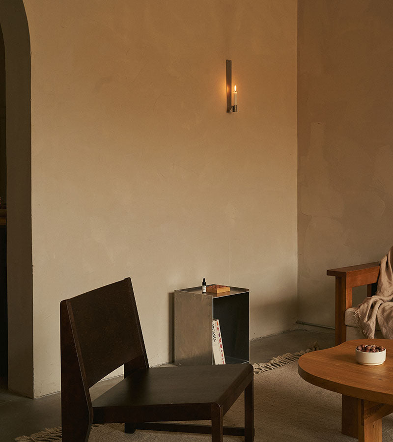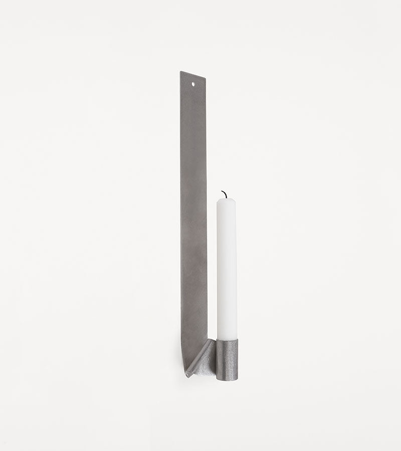The Ornament Candle Holder from Frama is a wall-mounted sculpture for candles crafted from delicate stainless steel and designed by Kim Richardt. The geometrical stainless steel piece gently reflects candlelight while adorning your wall. Easy to mount with a single nail or screw.