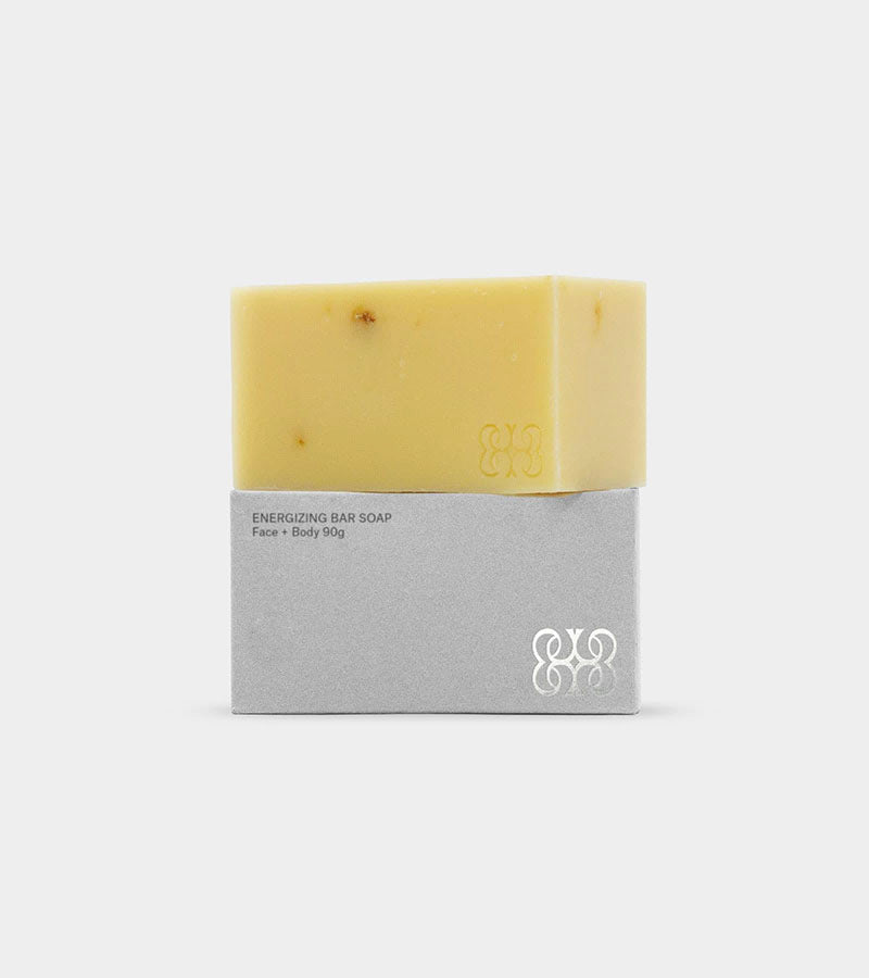 The Energizing Face + Body Soap from Sol Seok. A face and body bar that cleans thoroughly and revives dull skin. Sea Buckthorn brings antioxidants and supports healthy tone, while Shea, Cocoa, and Almond butter keep skin comfortable and smooth. Citrus oils of bitter orange, tangerine, and neroli refresh. Calendula softens the finish.
