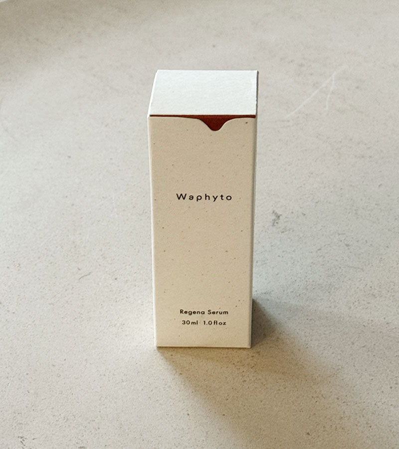 Regena Serum from Waphyto. A luxurious beauty serum for aging-care concerns, such as signs of aging from UV rays and other damages. Regena Serum contains a combination of functional peptide and domestically farmed ashwagandha with five powerful plants grown in the Mikawa region. It blends effortlessly into the skin with a light texture that recharges your skin with moisture, and protects from external stressors during the day.