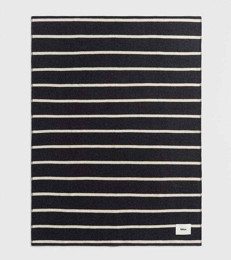 The Lambswool Blanket Starling Stripes from Tekla Fabrics is made of responsibly sourced lambswool and finished with whipstitching. Soft lambswool is woven in a tight weave and lightly brushed to balance lightness with durability.