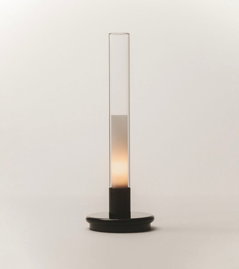 The Sylvestrina Black portable table lamp by Santa & Cole is an elegant and modern lamp with subtle references to traditional oil lamps. Freed from oils, kerosene or cords, and powered by an efficient rechargeable battery, Sylvestrina, very robust in its delicacy, comes in handy for every occasion. Simply press the outer tube down to activate the switch, adjusting accordingly, to full, medium or zero strength. It is charged by induction, and its light really is that of an oil lamp.